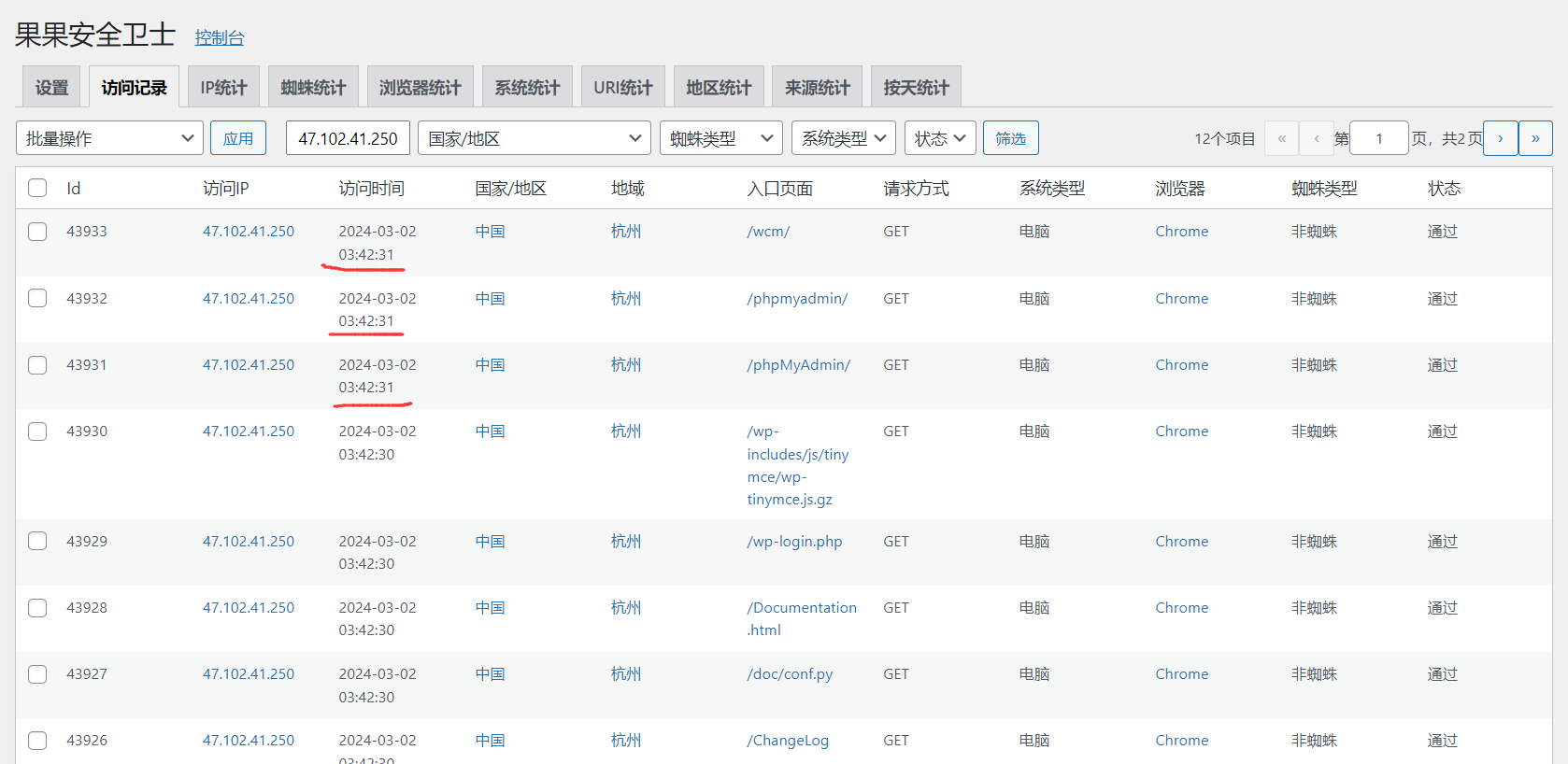 但是从果果安全卫士插件统计的访问数据来看,可不止这些IP访问。