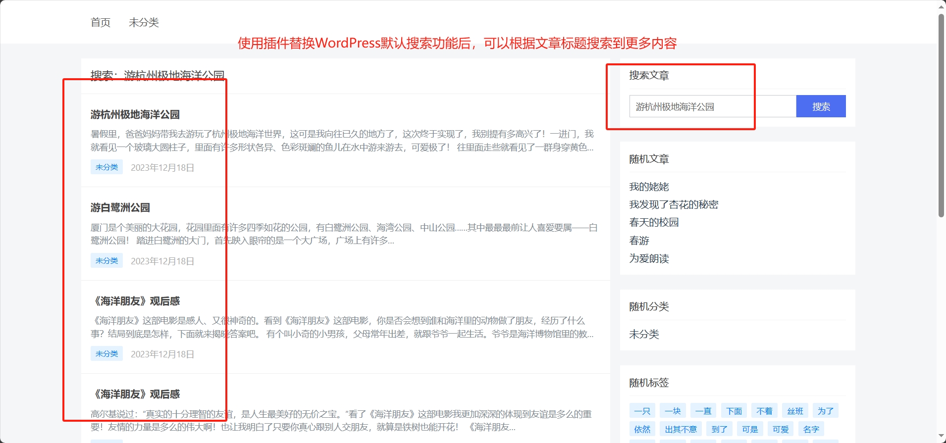 特别提示:本插件相关文章和WordPress搜索功能不依赖于文章标签,文章没有标签也可以使用。