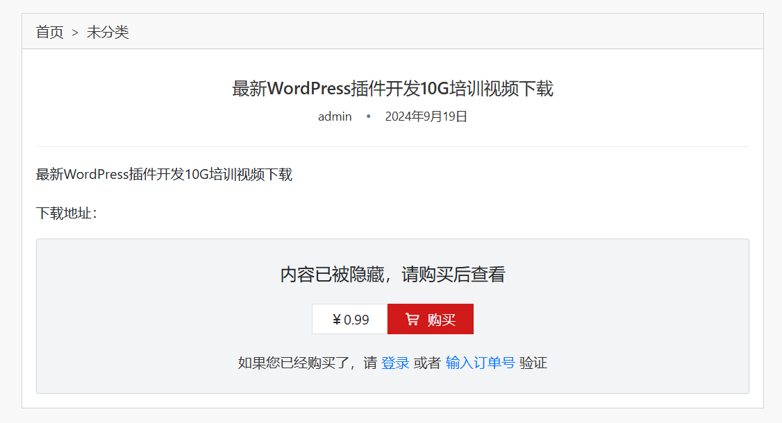 支持隐藏文章内容的一部分或者隐藏指定分类下的所有文章,用户需要付费后才可以查看。