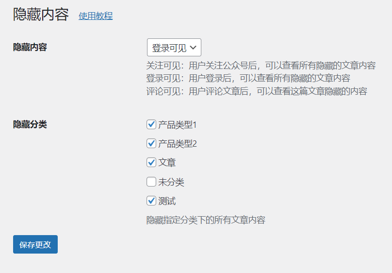 - 支持隐藏指定分类下的所有文章内容,无需在内容中使用简码隐藏。